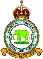 The officer who had been ranting and shouting left the room, the guards were still standing by the door. The remaining interrogator told me to sit down, there was a chair in front of his desk. He offered me an English cigarette and he then went to a large bookcase which nearly filled one wall of the room. He took down a thick heavy looking volume and on the outside of the front cover I saw the 44 (Rhodesia) Squadron Crest. He read out things about the Squadron that I was not aware of, also the names of different aircrew of the Squadron.